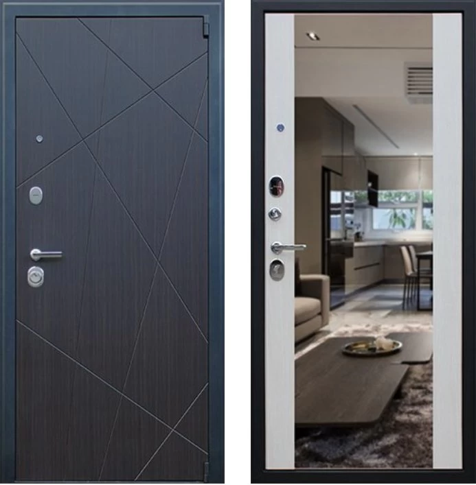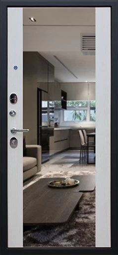 Надежная входная Дверь Вектор с зеркалом премиум класса по цене 48 981 руб. Большая толщина стали защитит от проникновения в ваш дом, квартиру или коттедж. Используется очень качественная фурнитура: замки, цилиндры, ручки, защелки. Покрытие и отделка двери изготовлено под внимательным контролем производителя. Дверь имеет долгий срок службы и гарантию.