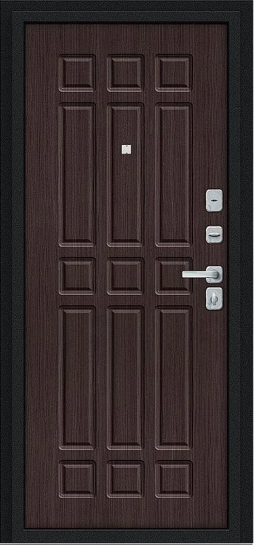 Надежная входная Дверь Браво Мило МФ/BChrome Букле черное/Букле черное/Wenge Melinga премиум класса по цене 33 331 руб. Большая толщина стали защитит от проникновения в ваш дом, квартиру или коттедж. Используется очень качественная фурнитура: замки, цилиндры, ручки, защелки. Покрытие и отделка двери изготовлено под внимательным контролем производителя. Дверь имеет долгий срок службы и гарантию.