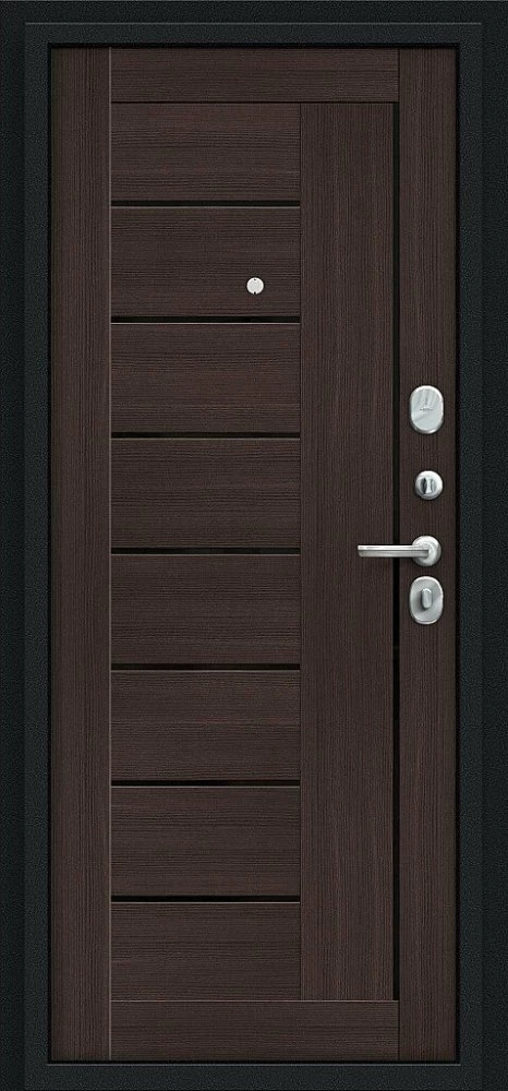 Надежная входная Дверь Браво Проф Букле черное/Wenge Veralinga премиум класса по цене 32 931 руб. Большая толщина стали защитит от проникновения в ваш дом, квартиру или коттедж. Используется очень качественная фурнитура: замки, цилиндры, ручки, защелки. Покрытие и отделка двери изготовлено под внимательным контролем производителя. Дверь имеет долгий срок службы и гарантию.